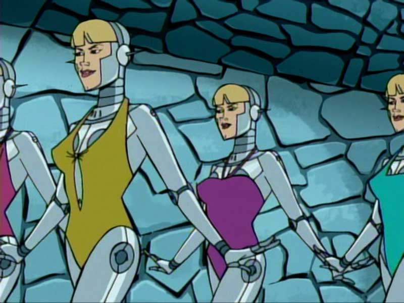 "The Venture Bros." (TV 2004 Season 1, Episode 11, "Past Tense") - This episode includes the character Mike Sorayama and his "Lesliebot" robots. Half way through the episode, Mike asks Dr. Venture, "Notice anything familiar about them?" In which Dr. Venture responds, "Yeah, I had that issue of Heavy Metal too." He is referring to the cover of November 1980 by Hajime Sorayama, which looks like the Lesliebots. Because of this similarity, the episode was held back from being re-aired for nearly a year due to legal concern. However, it did return with a "thank you" credit added for Hajime Sorayama.